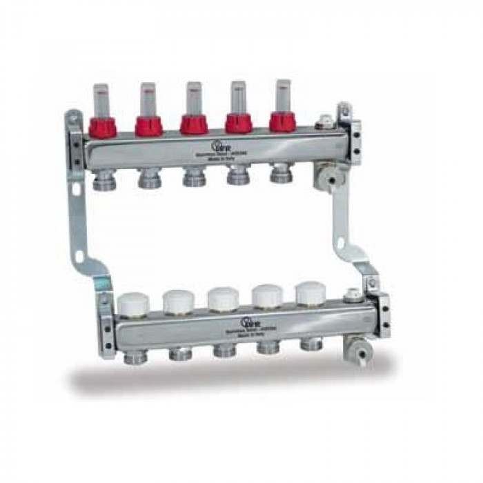 Професійний колекторний блок IVR 802 від провідного італійського виробника, спеціально розроблений для точного розподілу та контролю потоків теплоносія в системах водяної теплої підлоги. Цей колектор забезпечує високу ефективність та гнучкість налаштування контурів.