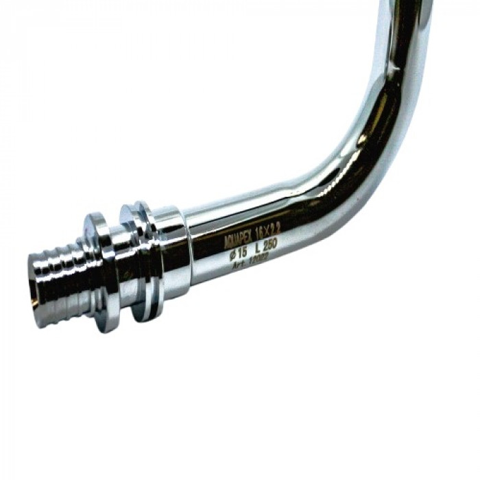 Коліно хромоване, для підключення радіатора, AQUAPEX застосовується в системах радіаторного опалення із зшитого поліетилену або металопластикової труби для міцного та надійного з'єднання запресування з використанням насувної гільзи. Витримують температуру робочого середовища до 115 ° С та тиск до 25 бар.