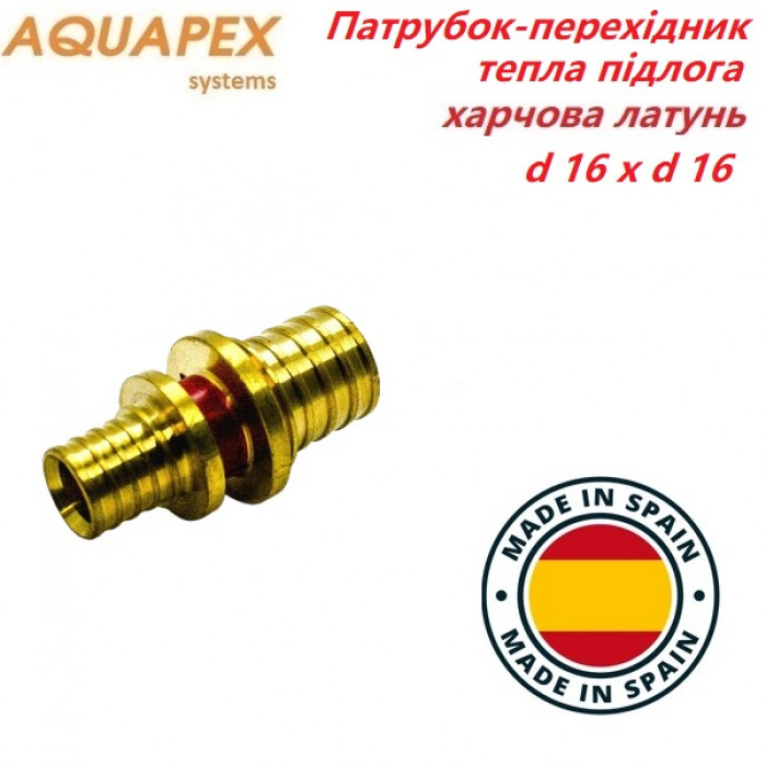 Перехідник (патрубок) для системи "тепла підлога", редукційний AQUAPEX не звужує діаметр трубопроводів, що приєднуються – за рахунок розширення трубних кінців перед виконанням з'єднання. Фітинги розраховані на використання в системах з номінальним тиском до 16 бар та максимальною робочою температурою не вище 95 °С.