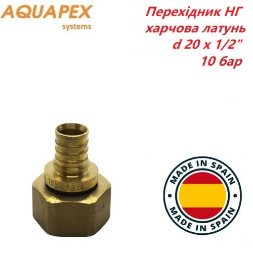 Перехідник, з накидною гайкою AQUAPEX використовується для монтажу систем водопостачання та опалення з трубами AQUAPEX. При виробництві фітингів використовуються тільки якісні та міцні матеріали, які повністю безпечні для здоров'я людини.