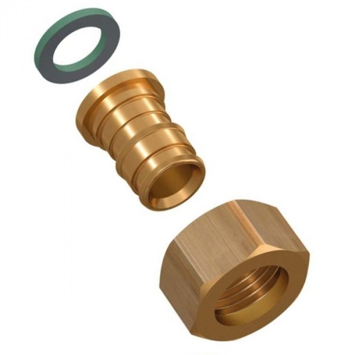 Головна перевага цієї моделі — наявність вільно обертової накидної гайки, що дозволяє монтувати та демонтувати вузол без обертання самої труби. Фітинг виготовлений із високоякісної латуні та укомплектований гумовою прокладкою для герметизації.