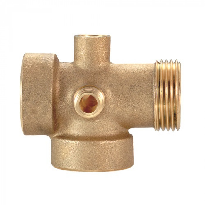 Тип: По суті, це колекторний з'єднувач із двома основними прохідними отворами та трьома бічними відведеннями, що в сумі дає п'ять різьбових виходів.